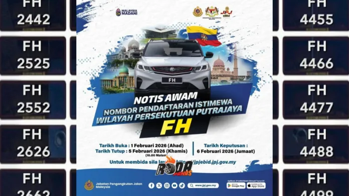 Bidaan bagi nombor pendaftaran khas FH akan berlangsung selama lima hari, bermula 1 Februari dan berakhir pada 5 Februari jam 10 malam. Sepanjang tempoh ini, pembida boleh mengemukakan tawaran masing-masing melalui sistem yang disediakan.